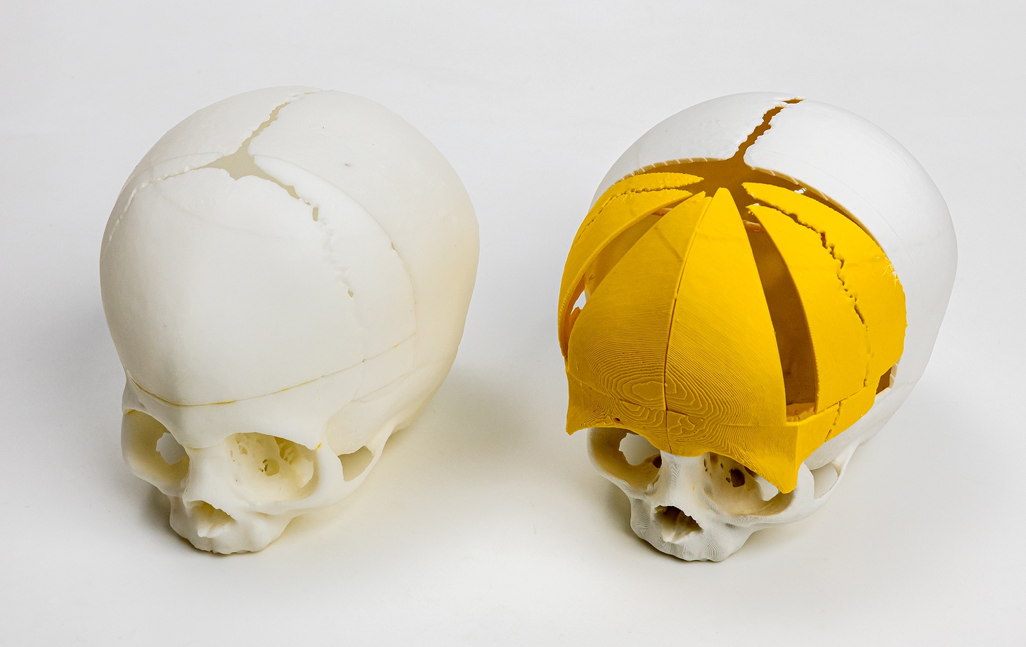 Når kraniesuturer lukker for tidligt hos spædbørn, kan hovedet blive skævt og i nogle tilfælde kan der opstå øget tryk på hjernen. Ud fra barnets lavdosis-CT laver vi en patientspecifik 3D-model og afprøver virtuelt, hvordan knoglerne bedst kan deles og flyttes. Sammen med kirurgerne fastlægges målet for formen og volumeforøgelsen.