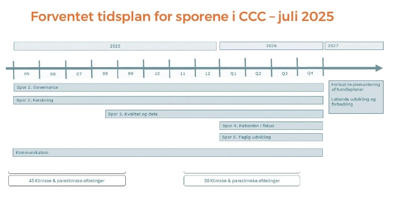 Alle opgaver bliver ikke løst på en gang. I første omgang koncentrerer vi os om at få fundamentet for udviklingen på plads. Det betyder at hovedfokus i 2025 er på Governance, Forskning samt Kvalitet og Data.