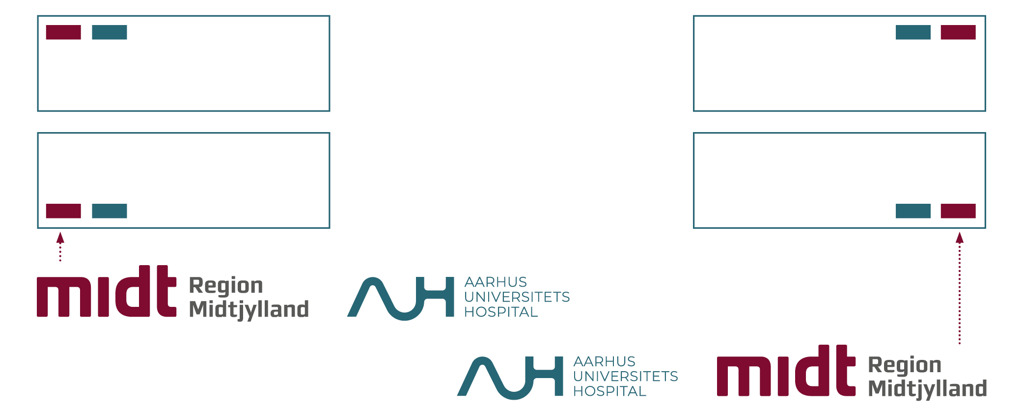 AUHs logo skal altid bruges sammen med RM-logo. AUHs logo må ikke bruges i mailsignatur og på sociale medieprofiler - her skal alene RM-logoet bruges.