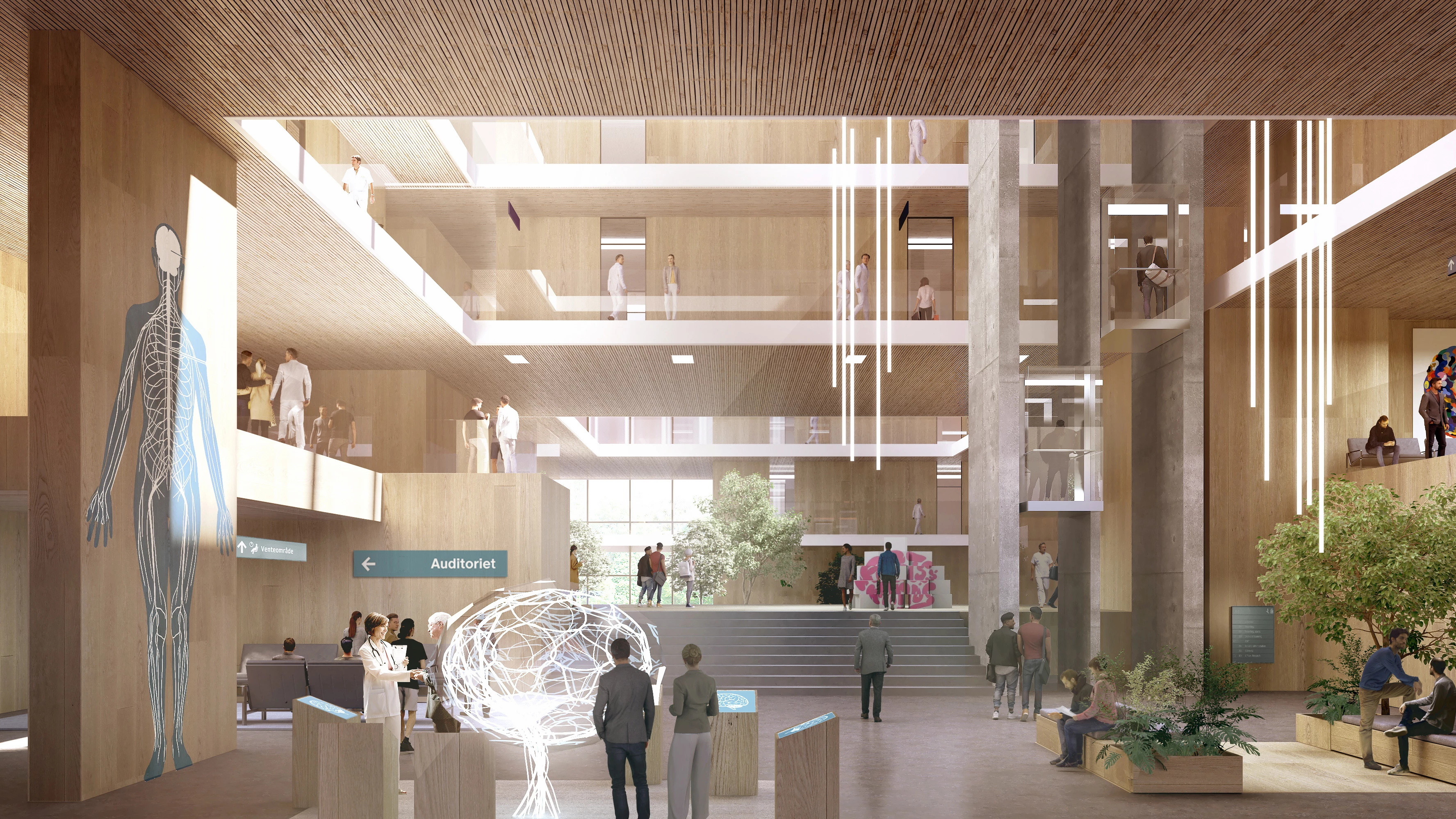 - Skal indeholde forskningsambulatorier, laboratorier, auditorium, konferencerum og kontorpladser